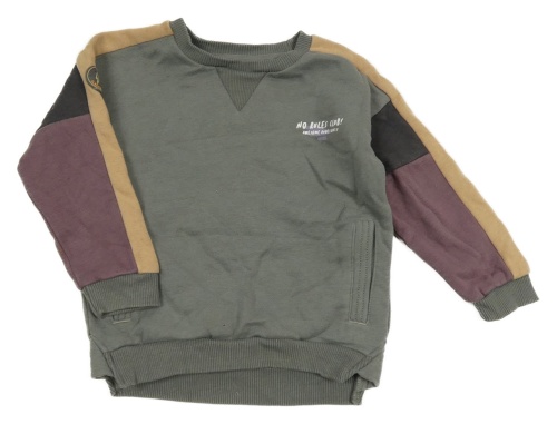 Šedokhaki-hnědobožovo-čokoládová mikina s nápismi a nášivkou Nutmeg