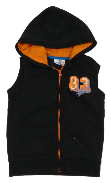 Čierna tepláková prepínaci vesta s číslom a kapucňou Topolino