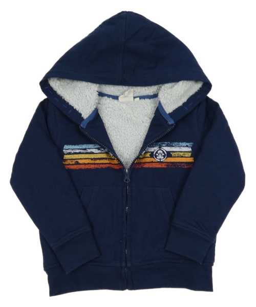 Tmavomodrá zateplená prepínaci mikina s pruhmi a kapucňou