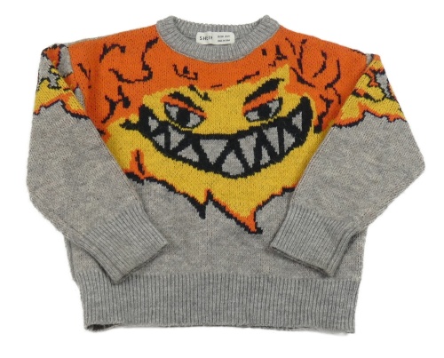 Sivý melírovaný sveter s príšerkou a plameny SHEIN