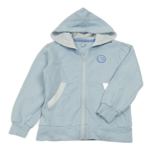 Svetlomodrá prepínaci mikina s nášivkou a kapucňou