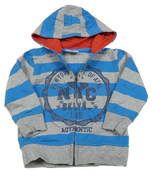Modro-sivá pruhovaná prepínaci mikina s potlačou a kapucňou Topolino