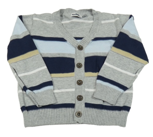 Sivo-modro-biely pruhovaný prepínaci sveter