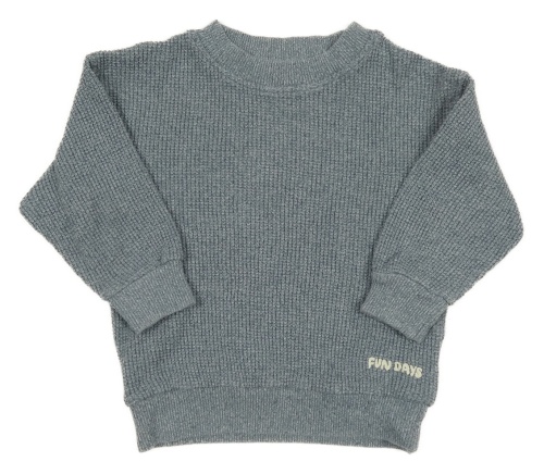 Modro-sivý melírovaný rebrovaný sveter s nápisom H&M