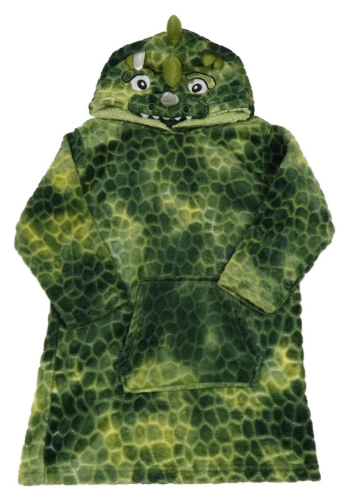 Zeleno-tmavozelená plyšová oversize mikina s kapucí - dinosaurus
