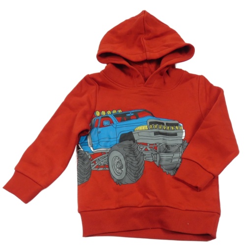 Červená mikina s monster truckem a kapucňou C&A