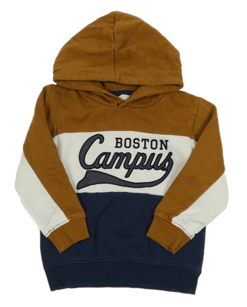 Hnedo-bielo-tmavomodrá mikina s nápisom a kapucňou H&M