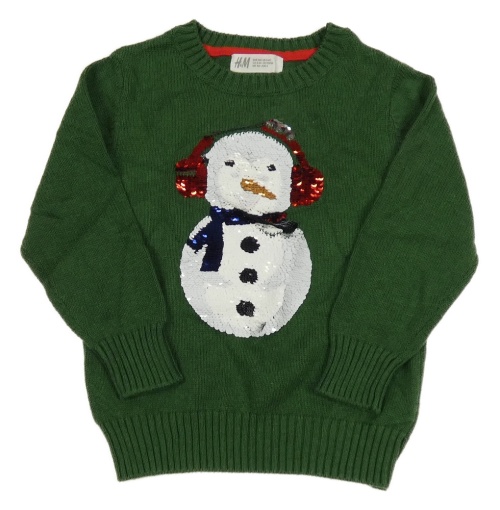 Tmavozelený sveter so sněhulákem z překlápěcích flitrů H&M