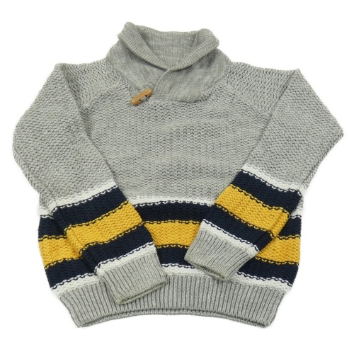 Sivo-bielo-tmavomodro-horčicový sveter s golierikom Lupilu