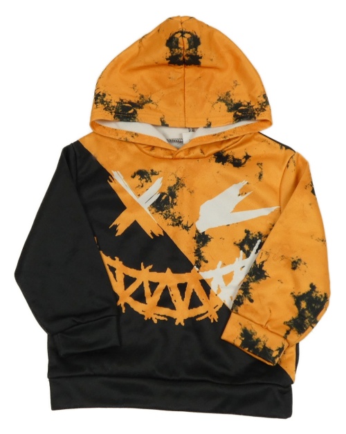 Čierno-oranžová mikina so smajlíkom a kapucňou Shein