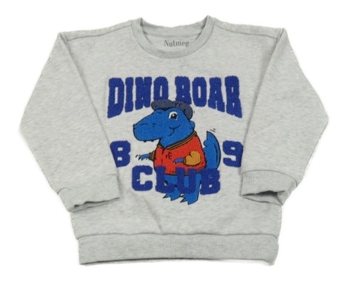 Svetlosivá melírovaná mikina s dinosaurom a nápismi Nutmeg