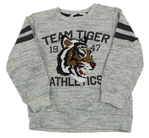 Sivá melírovaná mikina s nápisom a tygrem z flitrů H&M