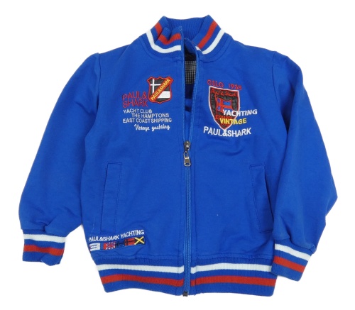 Cobaltovoě modrá prepínaci mikina s nápismi a erby a pruhmi PAUL&SHARK