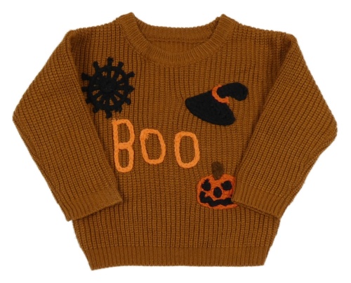 Medový rebrovaný sveter s kloboukem a pavučinou