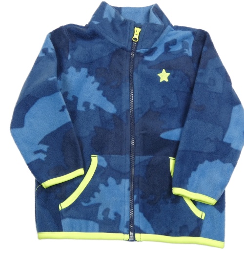 Tmavomodro-modrá army fleecová prepínaci mikina s dinosaurami a hviezdičkou F&F