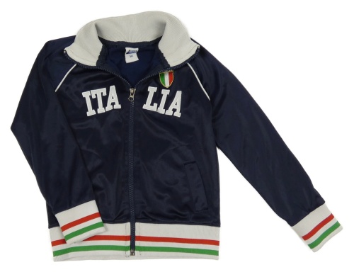 Tmavomodrá prepínaci športová mikina s nápisom a pruhmi