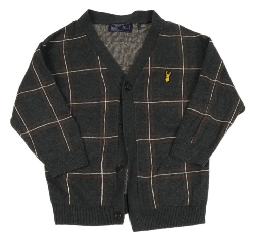 Tmavošedo-hnedo-biely kockovaný prepínaci sveter s nášivkou Next