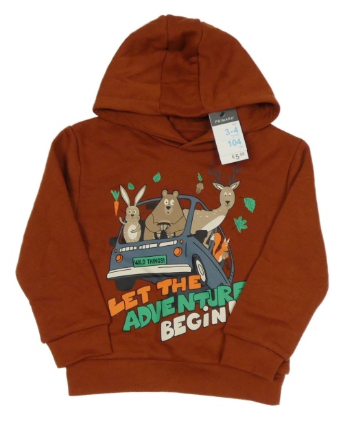 Nové - tmavohnedá tepláková mikina s autobusom a zvieratkami a kapucňou PRIMARK