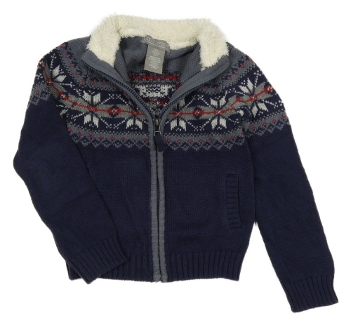 Tmavomodro-modrý vzorovaný prepínaci sveter