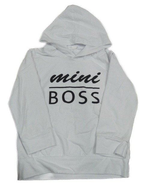 Biela slabá mikina s nápismi a vreckom a kapucňou
