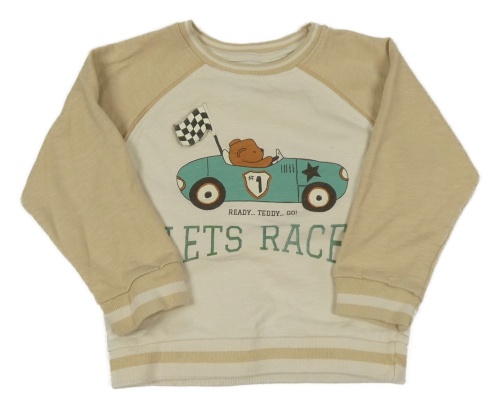 Světlebéžovo-béžová melírovaná mikina so závodním autom a nápismi St. Bernard