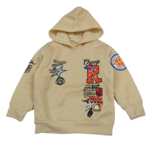 Béžová mikina s nápismi a kapucňou