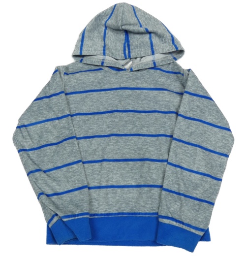 Sivo-modrá pruhovaná plyšová ľahká mikina s kapucňou