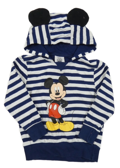 Bielo-tmavomodrá pruhovaná mikina s Mickeym a kapucňou