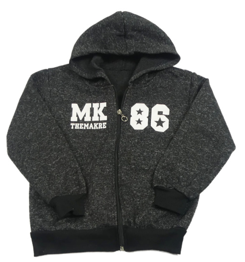 Čierna melírovaná prepínaci mikina s nápisom a kapucňou
