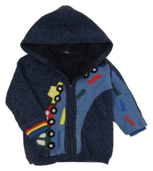 Tmavomodrý prepínaci zateplený sveter s autami a kapucňou George