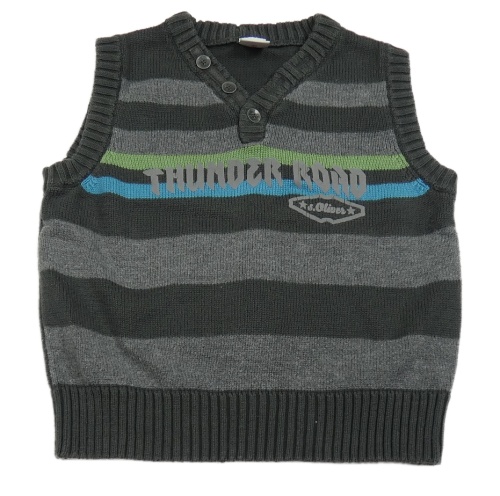 Tmavošedo-zelená pruhovaná pletená vesta s nápisom S. Oliver