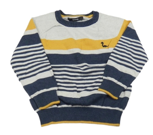 Sivo-tmavomodro-horčicový pruhovaný sveter s dinem George