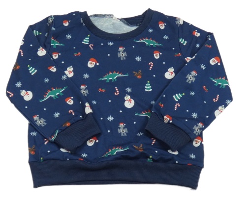 Tmavomodrá vianočná mikina so Santou a diny a robotmi