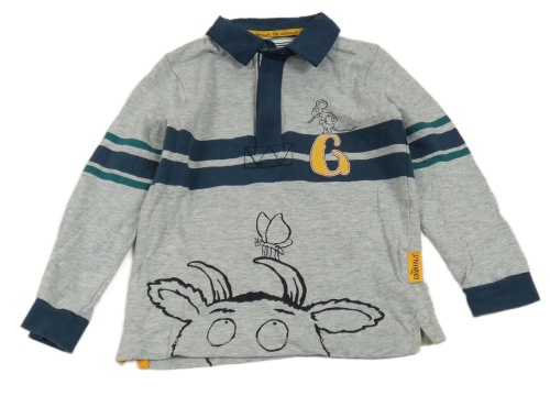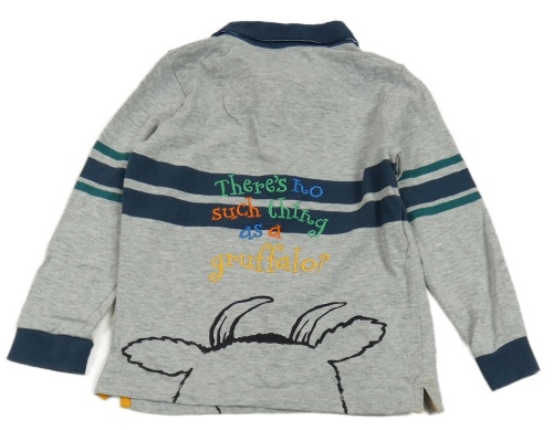 Šedo-tmavomodré polo mikinotriko s pruhmi a Gruffalem Tu