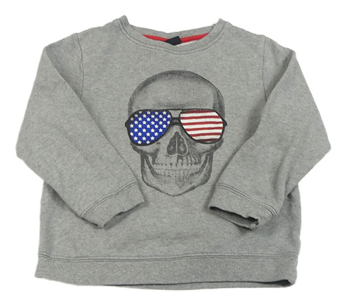 Sivá melírovaná mikina s lebkou a vlajkou Next