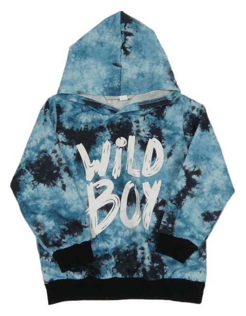 Čierno-petrolejová batikovaná mikina s nápisom a kapucňou
