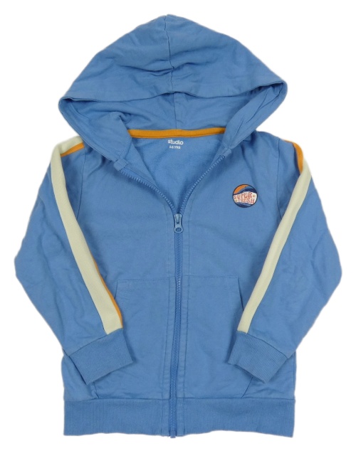 Svetlomodrá prepínaci mikina s pruhy na rukávech a kapucňou