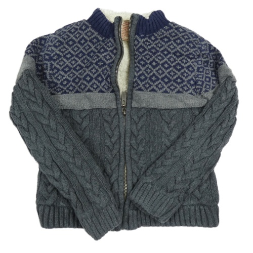 Tmavosivý zateplený prepínaci sveter so vzorom