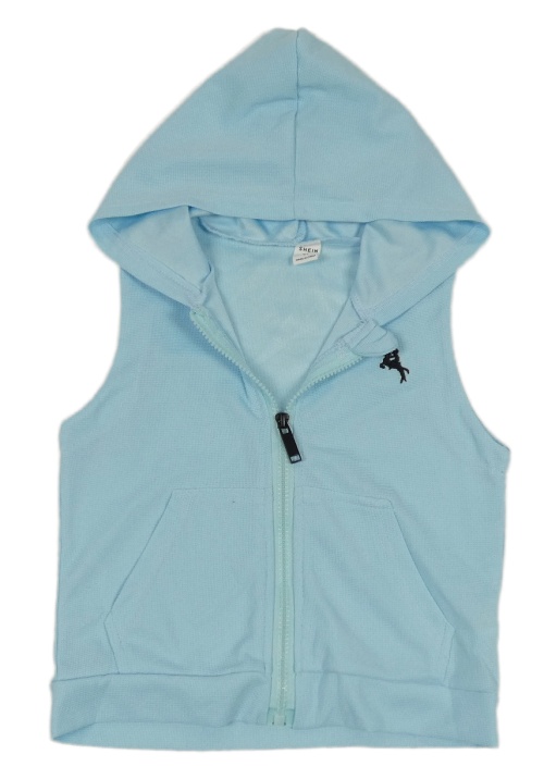 Svetlomodrá prepínaci vesta s výšivkou a kapucňou Shein