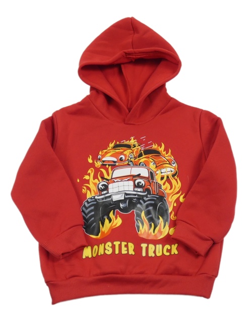 Červená tepláková mikina s monster truckem a autami a kapucňou SHEIN