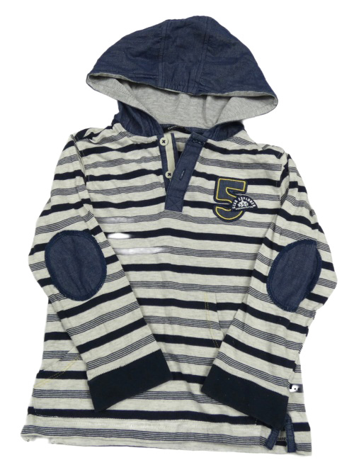 Svetlošedá -tmavomodré pruhované tričko s číslom a kapucňou George