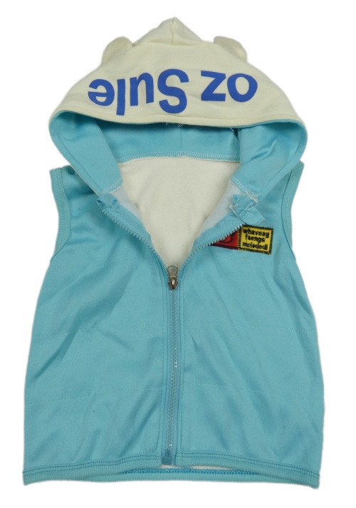 Tyrkysovo-biela tepláková vesta s medvedíkom a kapucňou