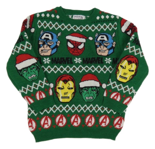Tmavozelený vzorovaný pletený sveter s Avengers s vánočním motívom MARVEL