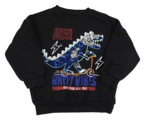 Čierna mikina s dinosaurem z překlápěcích flitrů F&F