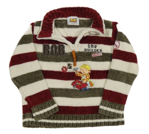 Bílo-vínovo-khaki pruhovaný žinylkový sveter s Bořkem