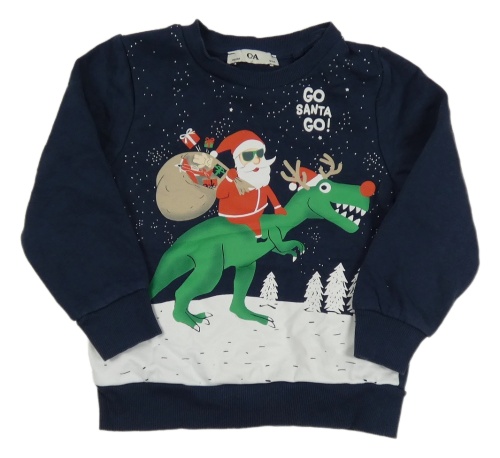 Tmavomodro-biela vianočná mikina so Santou a dinosaurom C&A