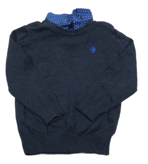 Tmavomodrý sveter s výšivkou a košilovou vsadkou Next