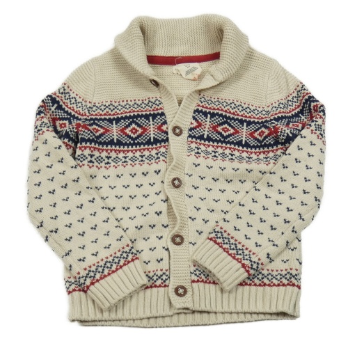 Béžovo-tmavomodro-červený vzorovaný prepínaci sveter