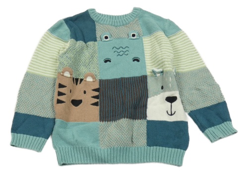 Zeleno-modrý kockovaný sveter so zvieratkami George