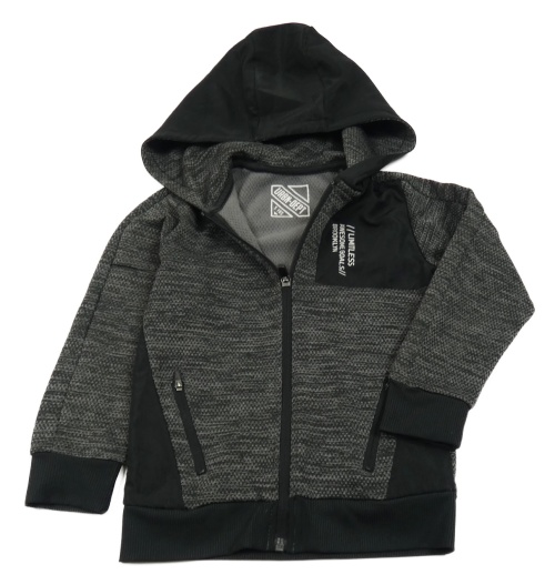 Čierno-sivá melírovaná prepínaci mikina s nápisom a kapucňou Matalan
